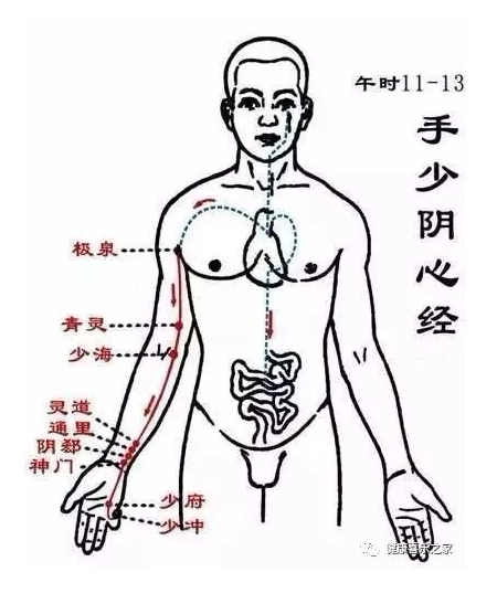 心经的起点在腋窝下的极泉穴,终点在小指的少冲穴穴位都是两边对称的,
