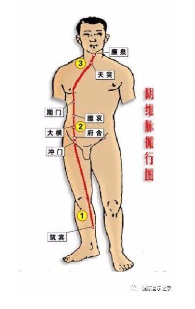 方法就是我上面所说的,用手指在阴维脉的循行路线一路按压
