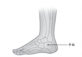 申脉穴位于人体的足外侧部位,脚外踝地方下端1厘米凹处。