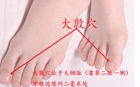 焦急中,他向我求救我告知他一个穴位疗法,这个疗法就是按摩大敦穴,