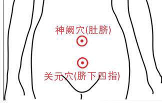 同上卧姿,用一手拇指指腹放在关元穴上,适当用力按揉30~50次。